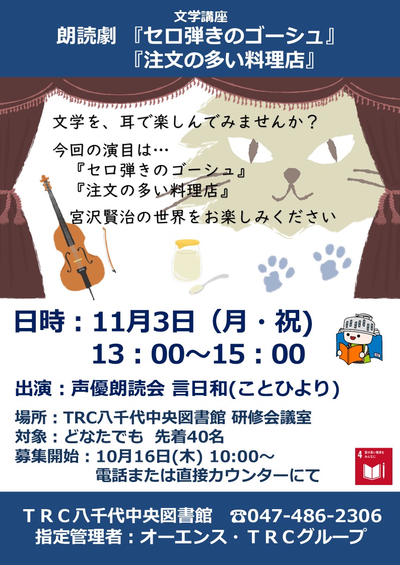 変更が生じた場合にはTRC八千代中央図書館のXでお知らせいたしますので、