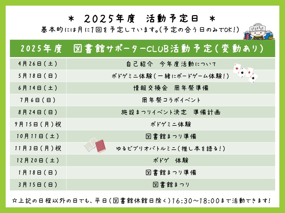 なお、このスケジュールは変更になる場合がございます。