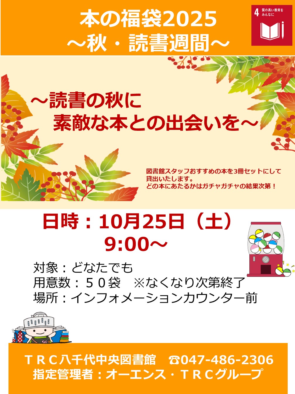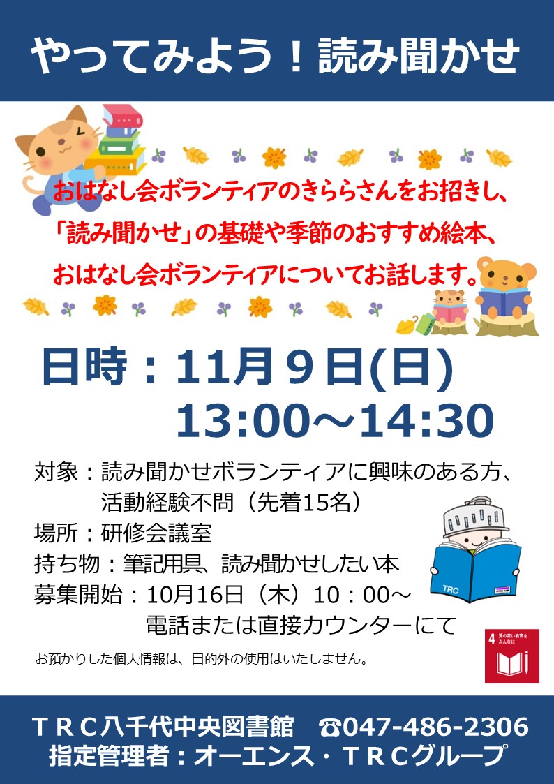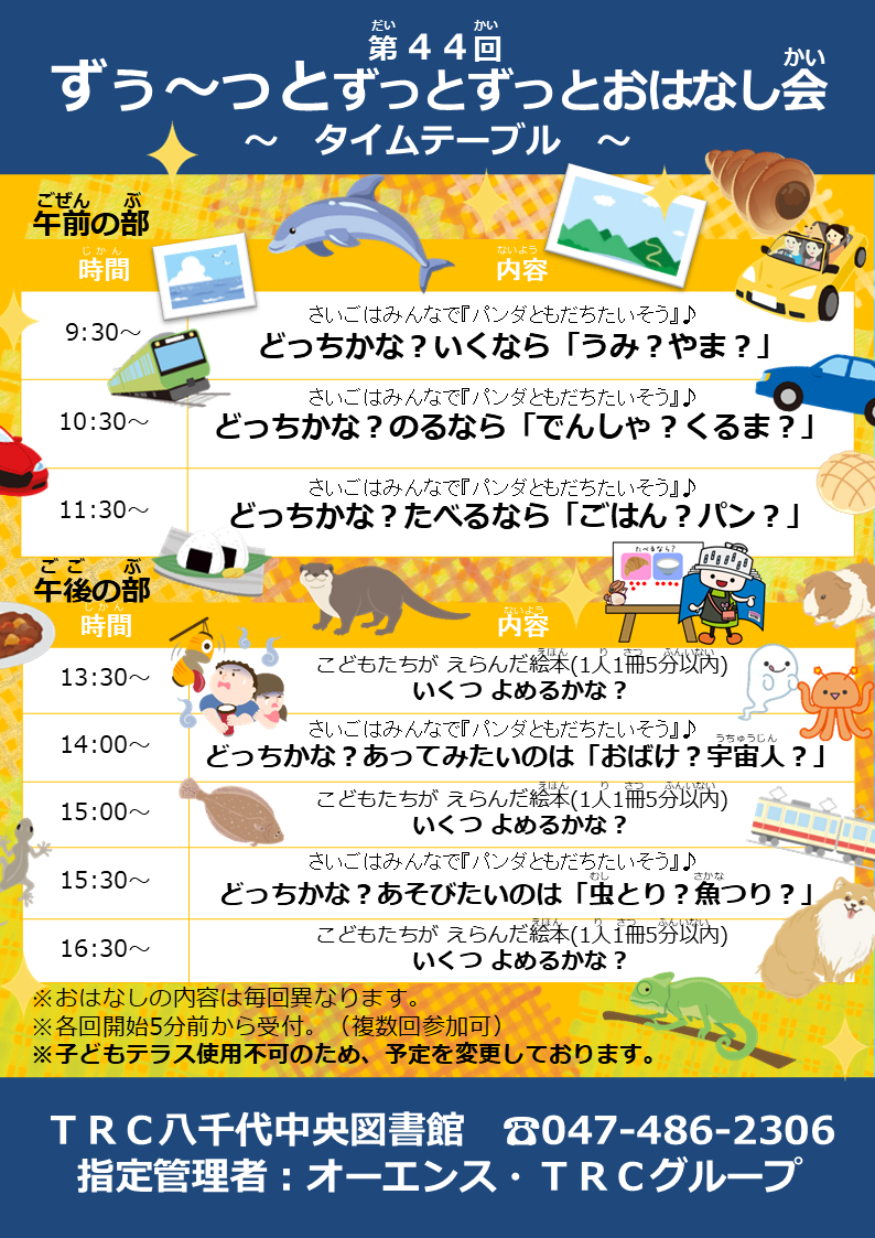 変更が生じた場合にはTRC八千代中央図書館のXでお知らせいたしますので、