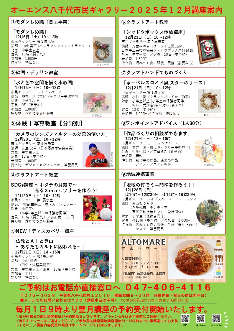 毎週木曜日定休/その他不定休あり(市民ギャラリーまでお問い合わせください。) -