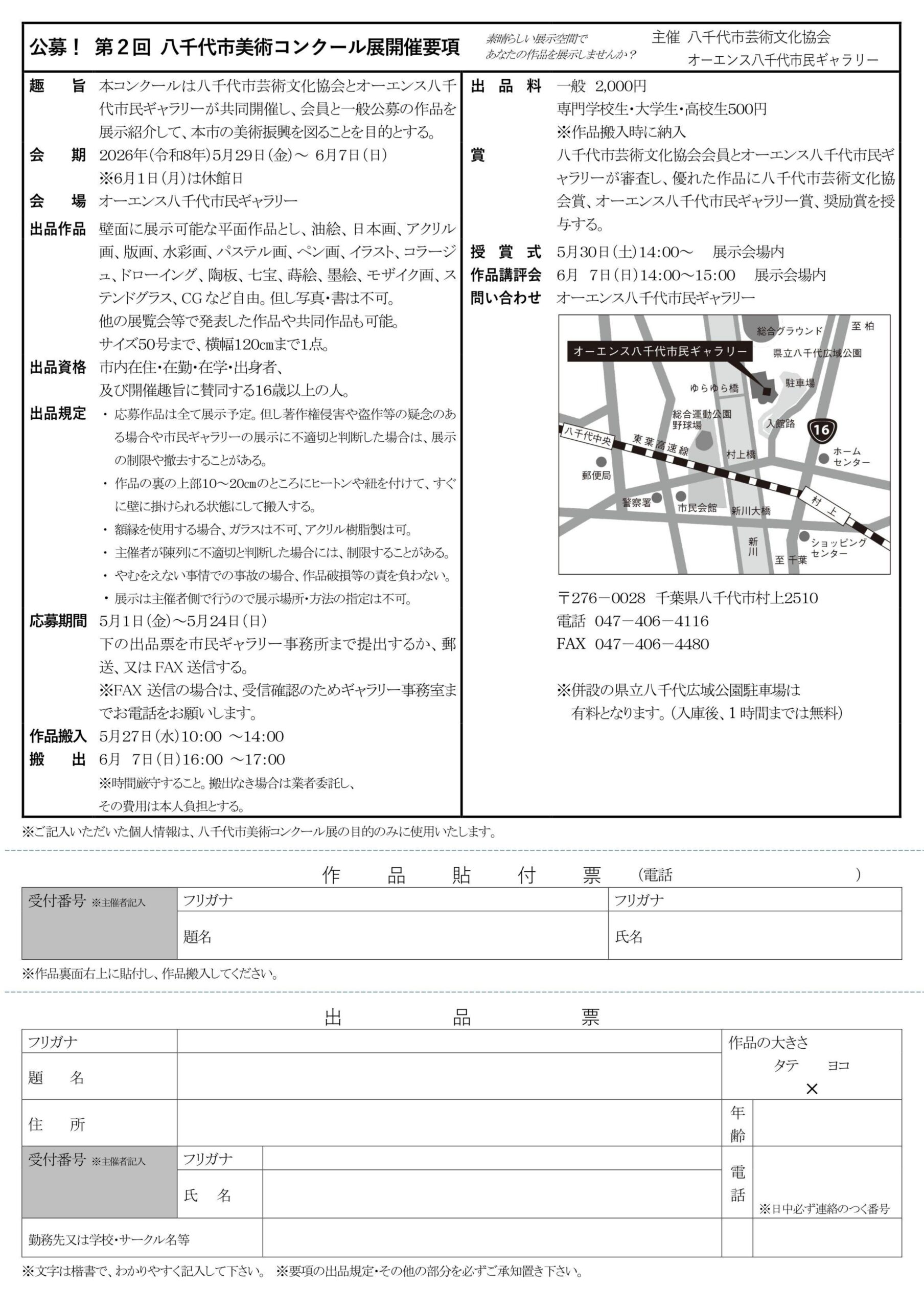 ・応募期間中に出品票を市民ギャラリー事務室まで提出、または郵送・FAXでも受付可(FAXの場合は送信後、確認の為ギャラリー事務室までお電話をお願いします)。