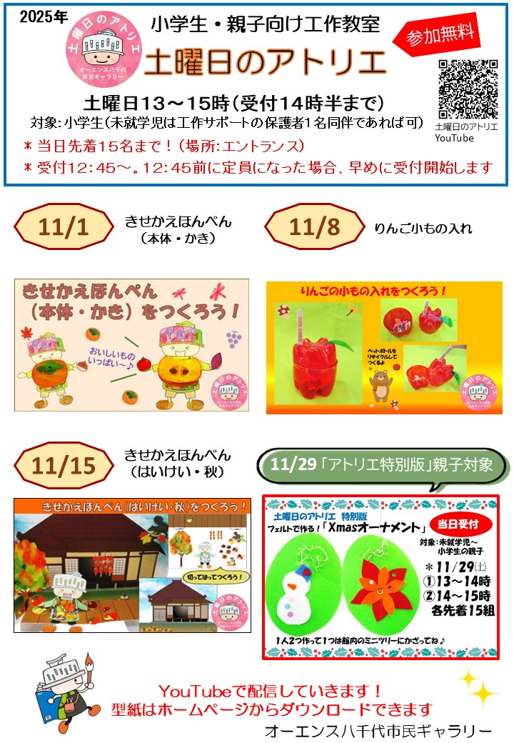 土曜日のアトリエ 2025年11月予告です。