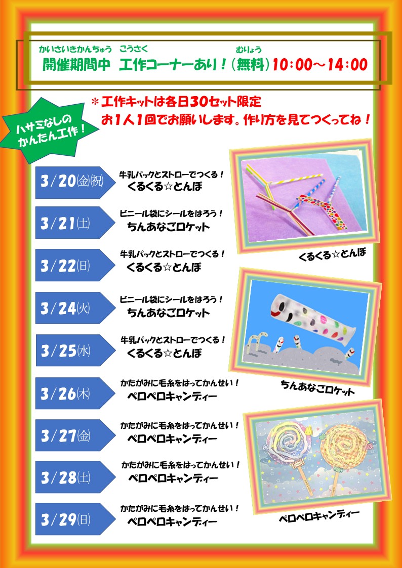 人気の工作ベスト15の発表、無料かんたん工作、参加してくれている子ども達の作品写真など楽しい展覧会です♪
