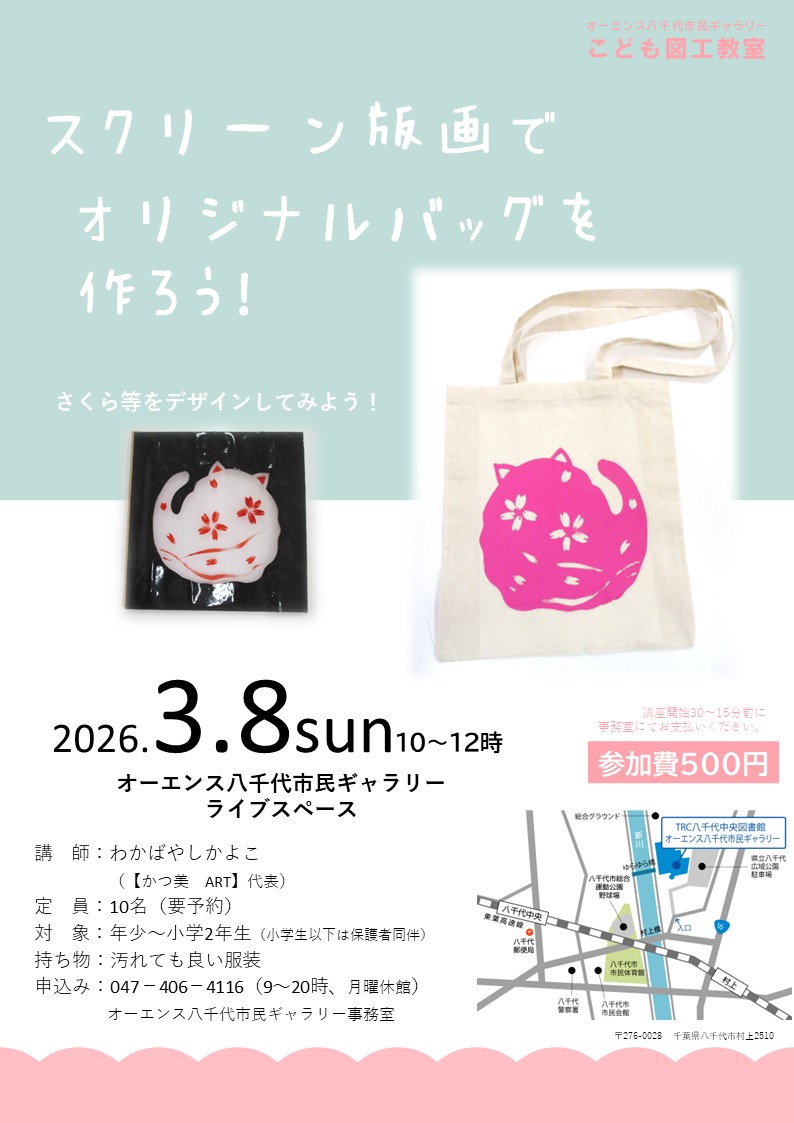 2026年 3月 こども図工教室「スクリーン版画でオリジナルバッグを作ろう!」