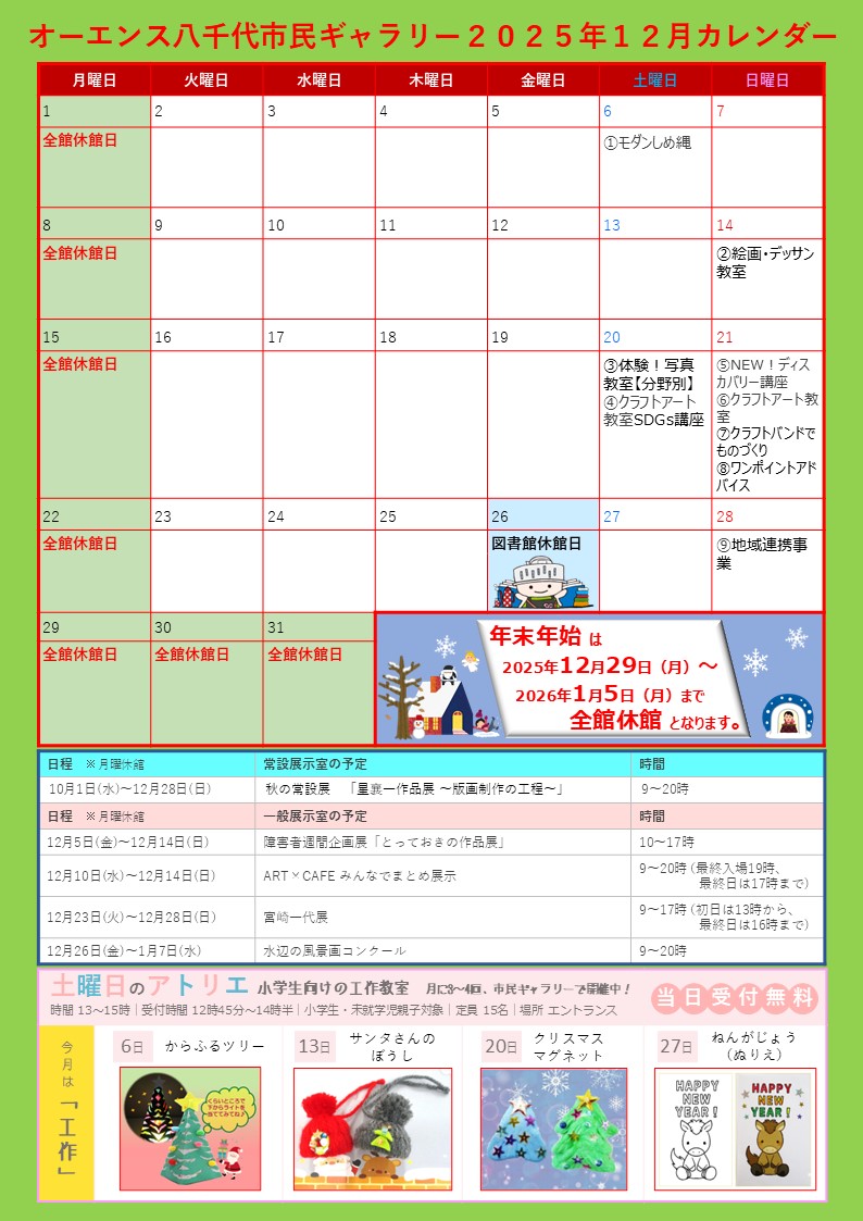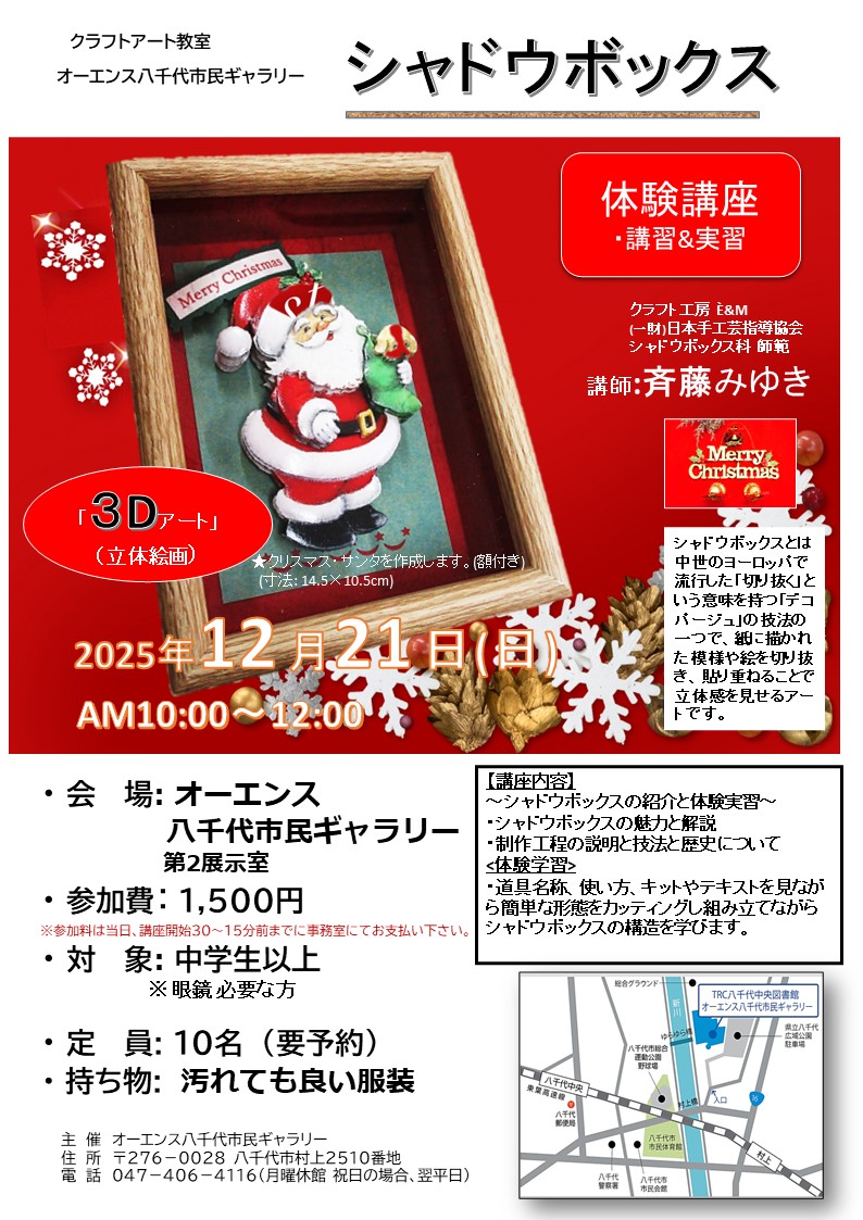 市民ギャラリーでは八千代市および近隣地域で活動する美術団体の合同展覧会の開催にあたり、出展する美術・写真・手工芸サークルや、美術教室を募集します。募集要項を充分に確認の上、お申込み下さい。