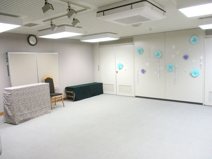 特別なおはなし会や図書館主催のイベントを行うスペースです。絨毯のお部屋ですので、靴を脱いでお入りください。