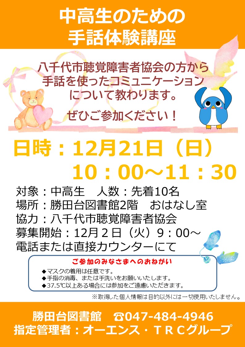 八千代市立勝田台図書館(TEL 047-484-4946)までご連絡ください。